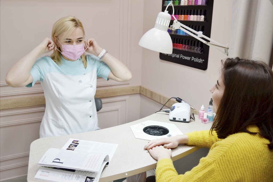 - обработка кутикулы, подпил ногтей (обработка стоп при педикюре) + специальный уход для ногтевой пластины в несколько этапов